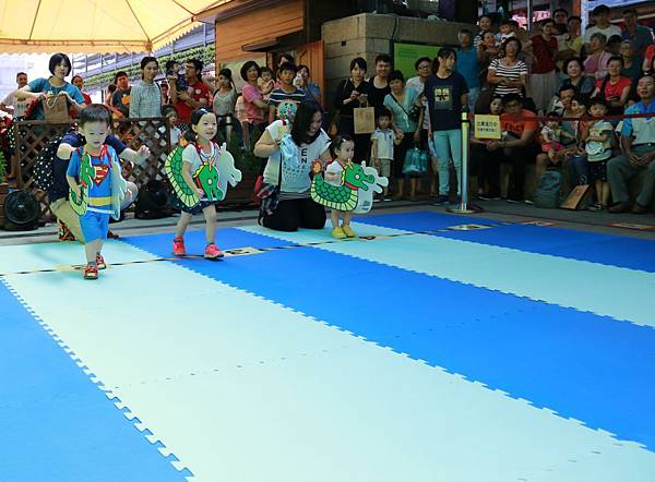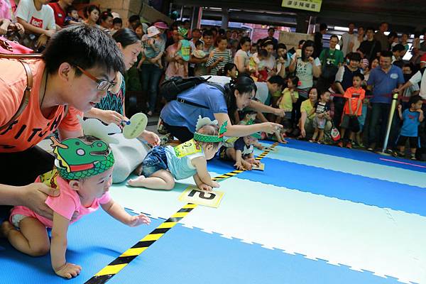 端午連假腳步近,國立傳統藝術中心應景推出「卡哇依」陸地版龍舟競渡─寶寶「陸上行舟」及「龍舟爬行」比賽,提前於6月14日熱鬧登場!有別以往大人限定的龍舟競賽,免費邀請8個月至3歲大的嬰幼兒參加,參賽者裝扮成龍舟造型進行爬行及賽跑過過「乾癮」,現場家長在終點處分別使出「獨門招數」,用糖果、餅乾玩偶甚至連電視遙控器都登場,要來吸引寶寶注意,超萌選手開賽後狀況百出或坐或哭或倒,還有寶寶一開賽就睡著,和搖旗吶喊的爸爸媽媽兩相呼應趣味十足。