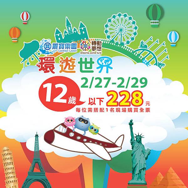 麗寶樂園也提醒民眾,去年觀光局發行的樂園消費優惠券效期只到2/29為止,麗寶樂園將原政府消費優惠券的「2人同行1人免費」,在228連假期間加碼優惠為「3人同行2人免費,第4、5人另享全票半價」,還沒有使用的民眾要把握最後這一波優惠,各項活動內容及優惠訊息,可上麗寶樂園官網 http://www.lihpaoland.com.tw或粉絲團查詢。