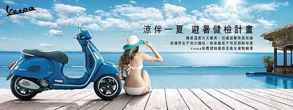 體感溫度天天破表,就讓Vespa Care陪您涼伴一夏,騎著您的Vepsa展開避暑旅程吧!Vespa總代理太古運通,隨著夏季的到來,為讓您心愛的Vespa成為您夏季出遊的最佳夥伴,即日起至8月底推出「Vespa Care 涼伴一夏 避暑健檢計畫」免費健診專案,邀請Vespa車主騎車回娘家,在夏天出外探險前享受汽車級的保養服務與免費愛車檢查,讓這個夏天的行車旅遊更安全、更有保障!