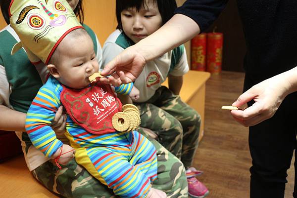 「生命禮俗」自出生、成年、婚嫁至死亡,標誌了每個人生的重要階段,也代表古人對生命的尊重。傳藝中心依循傳統禮俗開創「收涎抓周」儀式,「收涎」象徵收起口水,於嬰兒四個月大時,使用十二或其倍數的桃酥餅串成圈,由長輩擦拭寶寶嘴邊的口水,邊說祝福的吉祥話,祈福寶寶平安長大。嬰兒一歲度晬(tōo-tsè),「抓周」則像人生第一次的性向測驗,在竹篩裡準備代表各行各業的十二項物品,讓寶寶從中選擇,用以預卜未來的職業。儀式表達出長輩對孩子的期許,更凝聚全家人的心,過程充滿喜悅令人動容。