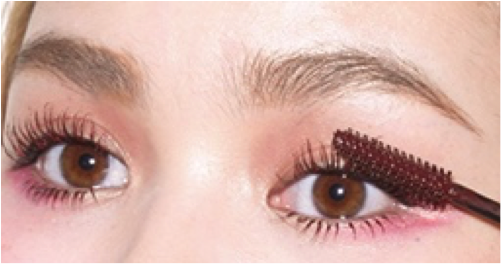 1028愛・勾引睫毛膏│使用方式 1.微撐起眼皮,持刷頭從睫毛根部向上輕刷,使上睫毛完整包覆高科技彈力膠體。