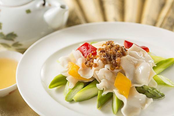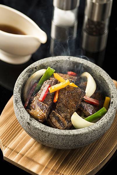 陳師傅在新菜單中,以中西合併的料理手法,重新詮釋此道經典的廣式菜餚,嚴選澳洲牛肋骨為主角,抹以些許鹽巴後入鍋乾煎,逼出牛油香氣,再加入西餐元素-特調香草風味醬汁,須先將芹菜、牛骨、洋蔥、紅蘿蔔煲出湯汁後,加入白酒、奶油以及香草子熬煮約三至五分鐘完成。外焦內嫩的牛小排置於高溫的石鍋容器中,佐以風格淋醬一同享用,入口盡是脂香縈繞與清新香草交錯的華麗堆疊。