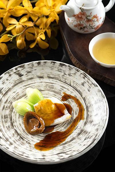 陳師傅選用香氣馥郁的姬松茸為此道燉湯的香氣來源,搭配頂級花膠入湯,加入豬龍骨、雞爪以及土雞塊以慢火精燉四小時,金黃清透的湯頭,兼具養生與濃郁香醇的湯品口感,讓人意猶未盡,回味再三!