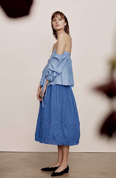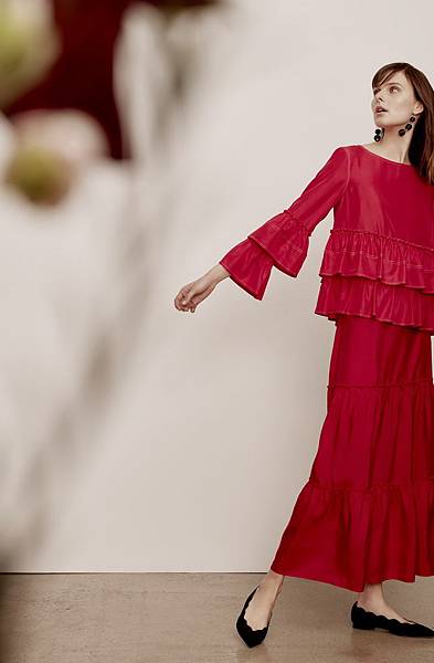 服裝色系以粉嫩多樣的色彩,帶來春意盎然的視覺饗宴:吉普賽紅、水藍色、丁香紫、杏桃色、玫瑰粉、金盞花橘。輪廓以寬鬆線條搭配硬挺或是褶飾的布料,多層次的鐘型袖和浪漫的荷葉邊袖,豐富的佩斯利印花,植物園印花混搭條紋展現出典雅且異國的風情。