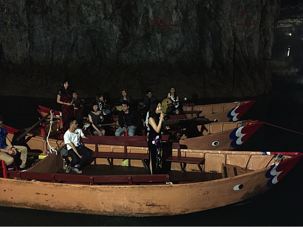 當遊客及樂手的船隻舞台以搖櫓方式就定位後,一首現代流行樂 青花瓷,就在古箏、竹笛以及其他絲竹樂器中漫漫開場,觀眾如癡如醉的同時,現場多位民眾直接拿出手機直播給予台灣本島的親朋好友分享這樣的音樂,而在花崗岩開鑿出的戰地坑道各家手機訊號原本就相當薄弱,還是要到現場才能欣賞到最動人的樂音。
