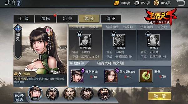 玩家等級達到65級後,即可於武將介面開啟武將緣分系統。此時,善用您熟知的三國故事背景,來搭配衍生出每位武將之間的緣分。經由消耗將魂和玉佩可升級武將緣分,武將緣分等級越高,所帶來的屬性加成越高。