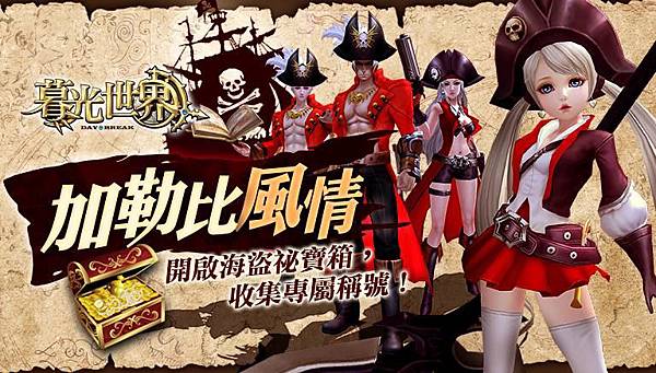 伴隨著海盜時裝的登場,神秘的「海盜祕寶箱」也隨之現身!冒險者可以透過每日副本活動取得,「海盜祕寶箱」中有著各式各樣傳奇寶藏,有機會獲得新培養道具靈核、神遺之血、傳奇裝備碎片等等,若是大幸運降臨,還有機會開出傳說中的海盜專屬稱號「我是海賊王」、「邁向偉大航道」,搭配「加勒比風情」時裝,讓你成為真正的海賊王!