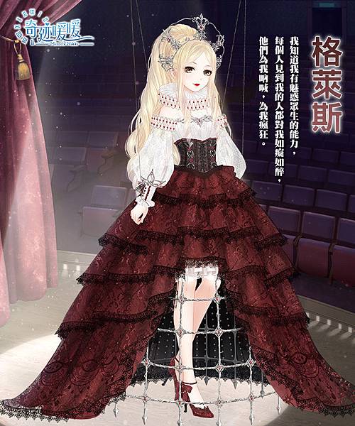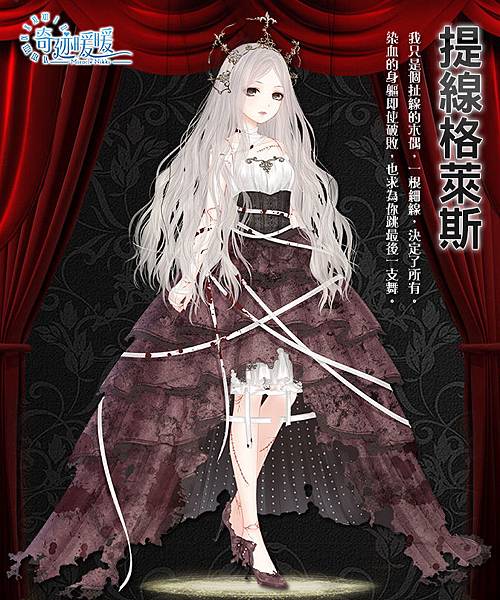 《奇迹暖暖》再度推出有生之年系列套裝「格萊斯」,隨著第十二章開啟後,暖暖一行人於莉莉斯王宮收藏室,遇上了以木偶為主題的「格萊斯」套裝。由莉莉斯王國木偶匠人打造而成的格萊斯,因精靈賦予了雙眸而被稱為奇迹木偶。搭配師們收集材料進化「提線格萊斯」後,將可獲得耀眼的「格萊斯」套裝。