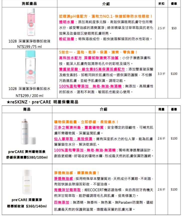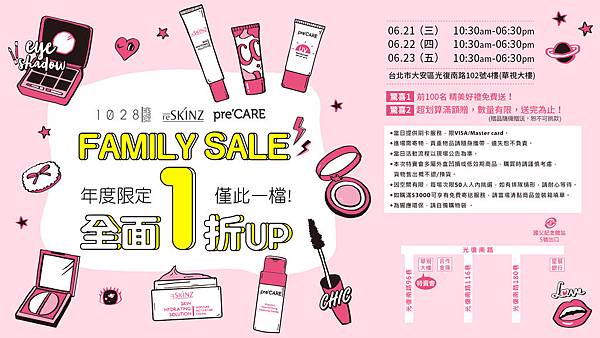 為回饋愛用者長期的支持與愛護,采妍集團特於2017/6/21(三)~6/23(五)舉辦3品牌-1028、reSKINZ、pre’CARE聯合特賣會,包含多樣彩妝、保養及明星口碑商品全面下殺1折起。活動期間驚喜好禮不間斷,現場加碼推出甜蜜滿額禮,超值酬賓,機會難得!年度限定,僅此一檔!熱愛美妝保養的女孩們絕對不要錯過囉!