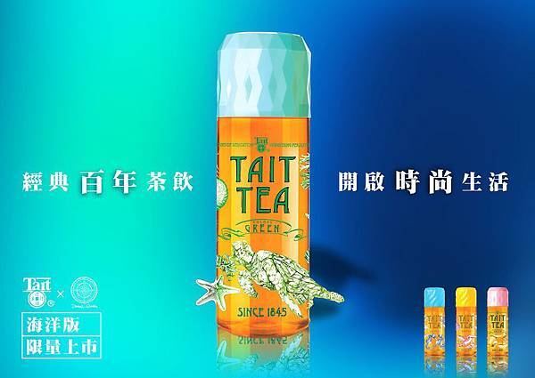 TAIT TEA限量海洋版於6月19日於統一超商7-11領先上市,除以海龜、鯊魚、海馬、魟魚為主題的四款外,更祭出全台僅供應一萬瓶的「彩色小丑魚」隱藏版,希望炎炎夏日能讓台灣消費者的每一口時尚品茗,開啟整個夏日的海洋狂想曲,讓今年夏天繽紛多彩!