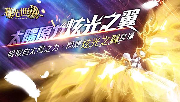 隨著本次版本更新,象徵著太陽之力的全新橙色翅膀「炫光之翼」登場,淡金色的光芒,宛如天使般的羽翼!冒險者可以透過翅膀轉盤,獲得散落的翅膀碎片,收集達指定數量即可於商城中進行兌換。張開透金色的翅膀,乘著幻想的風,讓我們一起飛過夜的盡頭!