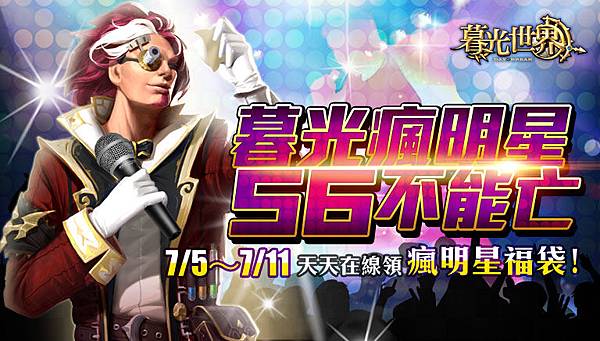 暮光世界也開始瘋明星啦!隨著金曲獎的落幕,眾歌星齊聚一堂,是不是也讓你開始懷念過去的經典歌曲呢?即日起商城上架全新「暮光瘋明星禮包」,有機會開出多重大獎,如賢者之石、進階之書等,以及超級經典稱號「癡情男子漢」、「56 不能亡」,給你正港台灣味!