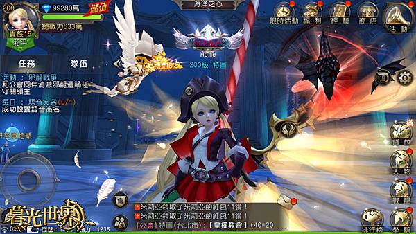 超殺傳奇副本「皇權教會」於《暮光世界》7月5日登場!一副本三BOSS,給你三種不同挑戰!由於困難度加遽,更加要求隊伍間的默契以及靈巧的技巧,高端副本就是玩得如此膽顫心驚,破關後還可獲得史無前例的超值寶物!結束戰鬥後,就讓全新神寵「海公主」,給你溫柔的呼呼,更可使用新橙色翅膀「炫光之翼」飛向地平線,休息過後再次踏上戰場,這就是精實的暮光人生!
