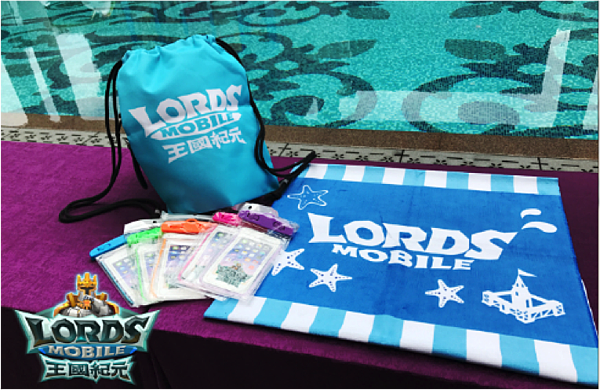 活動現場開設主題遊戲區,讓玩家除了在泳池歡樂之外,還可在派對女神的陪伴下體驗不一樣的遊戲互動趣味,挑戰成功即可獲得闖關虛寶好禮!同時,為感謝玩家對遊戲的熱情支持及蒞臨,官方特別為這次的泳池派對活動製作涼夏系列限量精美遊戲週邊,參與現場活動的玩家有機會將《王國紀元》沁涼海灘巾、帆布束口拉繩後背包、手機防水袋一起帶回家,讓王國夏日祭典的歡樂延續陪伴玩家們的夏日時光!