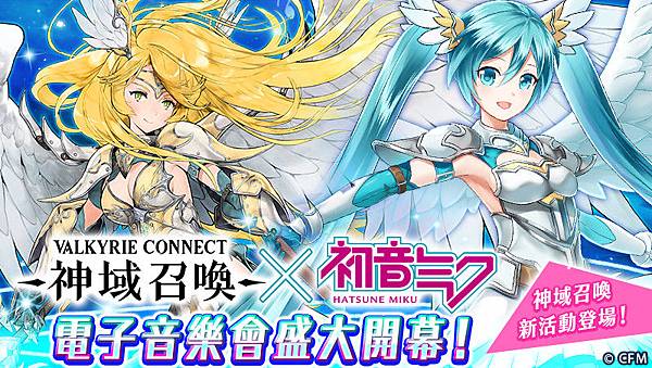 由日本Ateam Inc.(以下簡稱Ateam)製作發行的手機遊戲《神域召喚》國際版,推出的虛擬歌手「初音未來」合作活動中,電子演唱會盛大開幕,活動限定的角色「女武神未來」以及她的專用裝備「真・女武神未來的寶劍」登場。