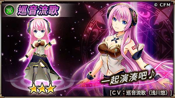 電子演唱會中活動限定角色會全部登場。「女武神未來」是合作限定的新角色。另外強力的活動限定角色「巡音流歌」擁有讓敵軍自相殘殺的技能「誘惑」。趁此機會獲得對限定活動有利的活動限定角色吧!