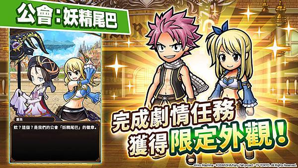 合作活動限定任務關卡「公會:妖精尾巴」登場。攻略本任務即可獲得『FAIRY TAIL』裡登場的角色臉型、髮型。請盡情享受全13話的特大史詩篇章「FAIRY TAIL魔導少年」合作活動原創劇情!