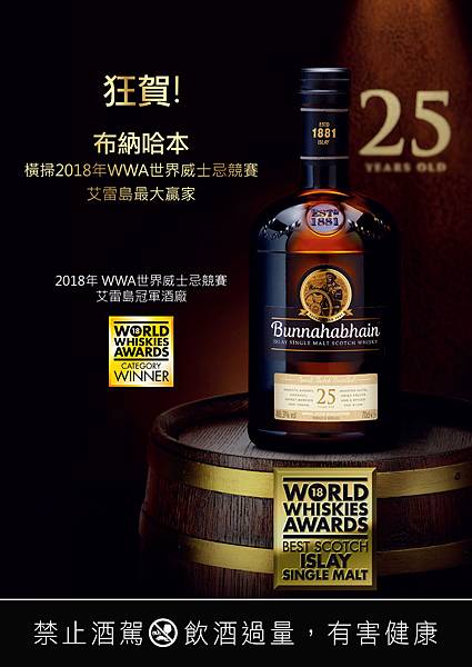 2018年WWA 布納哈本酒廠榮獲獎項殊榮如下