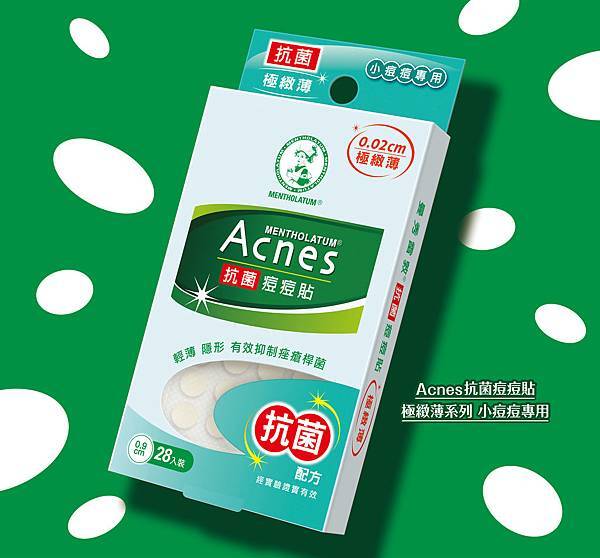 全新「Acnes抗菌痘痘貼 極緻薄系列」不只有效抗菌,還要更薄更隱形!創新0.02cm極緻薄貼片,輕柔貼合肌膚,隱藏痘痘零破綻;經SGS抗菌實驗證實,6小時內有效抑制痘痘菌;採用親水性敷料,有效吸收分泌物;外層覆蓋隔菌、透氣薄膜,保護青春痘,避免二次感染。同時推出【小痘痘專用】與【綜合型】兩種規格,幫你輕鬆完勝大痘、小痘!痘痘貼選Acnes,「抗菌x極緻薄」,讓痘痘不只神隱形,還要快速復原,好的更快更有效!