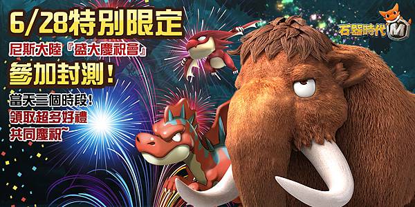 《石器時代M》即日起至6月29日止獨家於台港澳地區舉辦刪檔封測,凡參與封測且成功連動帳號的玩家,將可於遊戲上市後獲得絕版稱號「遠古馴獸師」!