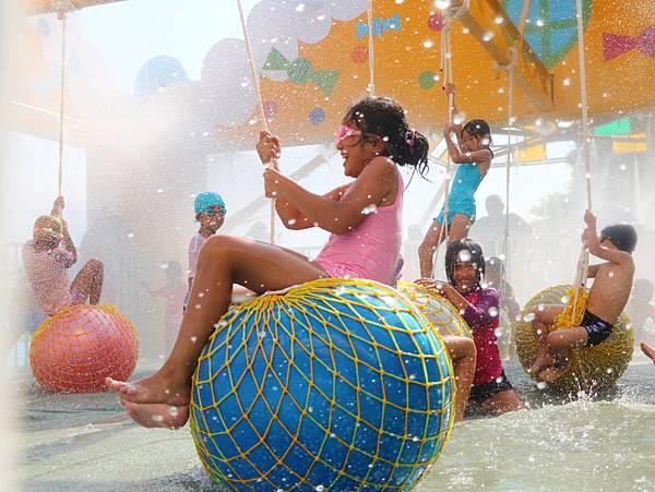 今年在水域遊戲區,以海上飛魚為造型的「飛魚海盜船」,橫跨三個水池,透過綜合滑道、水迷宮、水戰車、空中腳踏車「HiBike」等元素,串連成超大體系的水遊具設施,愛玩水的親子可以來趟水上童心大冒險;另外深受歡迎的水床遊戲倒轉水迷宮,今年規劃「旋轉水母」創意設計及噴水設施;親子戲水池則是融入爬網及「水火山」造型設計;還有游泳池區的「鱷魚滑梯」等設施,絕對讓遊客有戲水新體驗。在河域遊戲部份,今年除了龍舟及風帆體驗之外,首度規劃輕艇趣味競賽,遊客可現場報名參加。