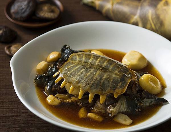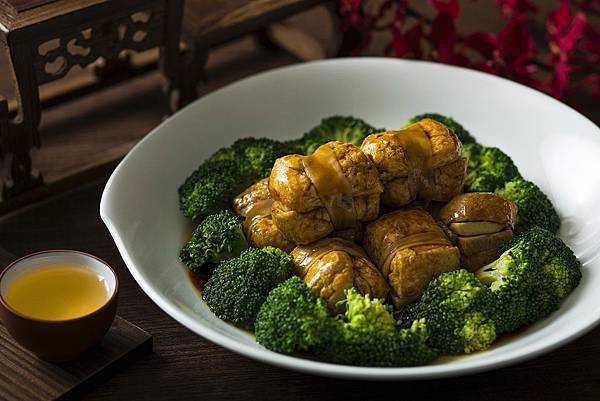 “老鵝”作為淮揚菜系裡必不可少的名菜,源自於寨橋周邊肥沃的生活環境,原生態散養的鵝隻,品質優良而遠近馳名;不勝枚舉的烹調方式,丁主廚仍堅持以最為經典的方式烹飪,選取一年以上的公鵝,先大火煸炒去腥,再輔以多種香料和中草藥文火慢燉,剛出鍋的老鵝,香氣四溢、色澤鮮亮、質嫩爽口、酥而不爛
