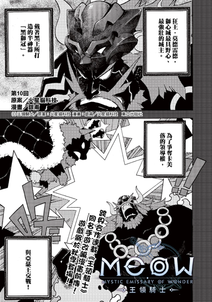 除了量身打造音樂專輯,同時亦邀請人氣漫畫家銀甫老師繪製《MEOW-王領騎士》的前傳漫畫,除了在遊戲官方粉絲團搶先公開外,亦收錄於東立出版社的《月刊龍少年》電子雜誌。在市場初試啼聲後,火星貓科技將與銀甫老師繼續合作,籌備本傳漫畫,並在市場上販售實體單行本,持續延伸泛娛樂的觸角。