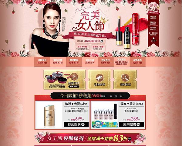 02. momo購物網在情人節期間也推出《完美女人節》活動,匯集美妝保養品做優惠特促,讓每個女人在情人節都能展顯自己最完美的一面,妝得水噹噹去約一個最浪漫的會。