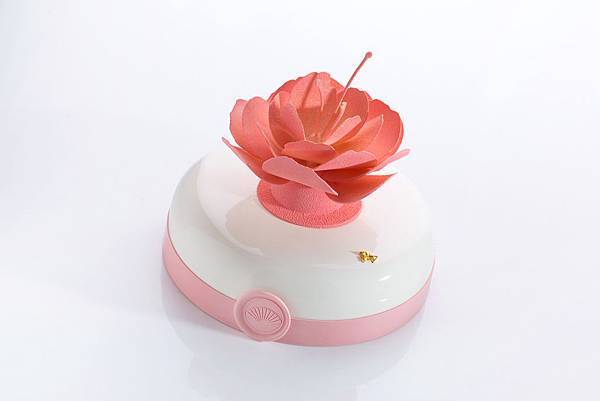 東方美人顧名思義即是取材於聞名世界的台灣茗茶 – 東方美人,Hin主廚說東方美人茶的茶香典雅清新,風味迷人,完美彰顯出東方女性的溫柔細緻,因此他將其製成東方美人茶慕斯,搭配香草海綿蛋糕、香酥可口的榛果脆餅和酸香馥郁的黑醋栗奶霜,內餡層次豐富,酸甜滋味伴隨淡雅脫俗的茶香。最後再將以巧克力捏塑成栩栩如生、典雅綻放的繡球花置於其上,美如其名,甜在其內,令人回味無窮。
