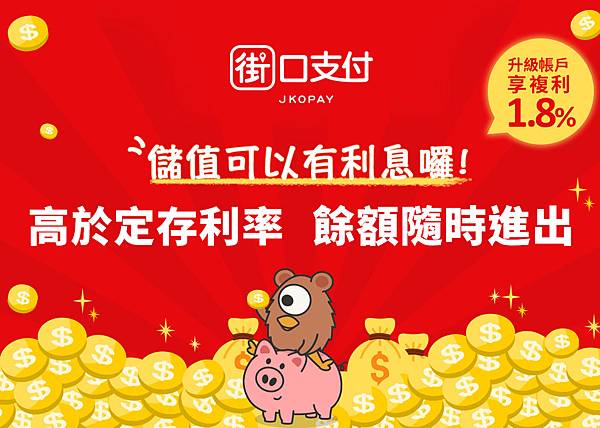 (2018年08月28日,台北訊) 街口支付將於9月3日推出台灣版本的餘額寶「街口託付帳戶」,保障年收益1.2%-1.8%,高於定存利率,享餘額隨時進出,且採複利每日計息、每日給息、每日利息自動滾入本金再賺利息。
