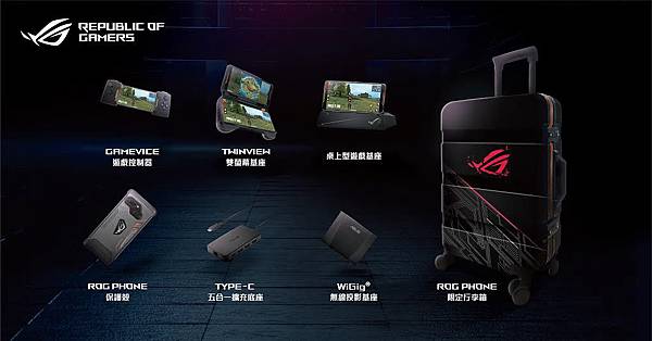 此外,為歡慶ROG Phone電競手機盛大開賣,ROG亦特別針對預購的消費者推出限量全配包優惠組合,內含:「專屬保護殼(市價NT$ 1,490)」、「TwinView雙螢幕基座(市價NT$ 8,990)」、「桌上型遊戲基座(市價NT$ 4,990)」、「GameVice遊戲控制器(市價NT$ 2,990)」、「Type-C五合一擴充底座(市價NT$ 2,990)」與「WiGig®無線投影底座(市價NT$ 7,990)」等精緻配件,以及「ROG Phone限定登機箱(市價NT$ 4,990)」,活動期間購買只要NT$ 29,990!僅此一檔,錯過可惜!歡迎玩家把握機會,踴躍前往參觀選購。