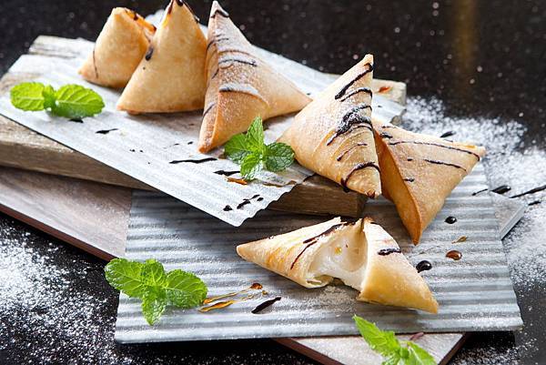 韓衍緒主廚更從中秋節大家最愛的甜點─烤麻糬得到靈感,先把麻糬包進切好的餅皮中,再用麵糊把餅皮黏合,下鍋油炸到餅皮金黃酥脆就能起鍋,淋上巧克力醬、焦糖醬、煉乳、糖粉等,就成了「微笑幸運拔絲餅」。趁熱咬上一口,酥脆的餅皮中帶著微微的Q勁口感,搭配麻糬的軟溜,肯定是客人都買單的飯後甜品,讓民眾中秋團圓上館子,也可以從店家的創意料理中,感受濃濃佳節氣氛!