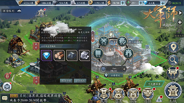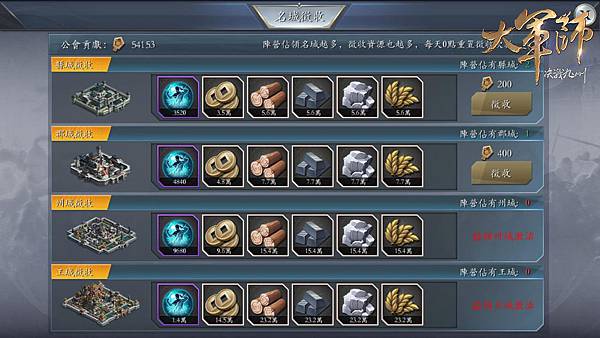 若有許多公會進行宣戰,而優先權則以宣戰時間最早的公會優先爭奪。除了爭奪之外,已佔領名城的公會,也必須提高警覺防止其他公會進行爭奪。首次占領城池的公會成員,全員可獲得豐富的鑽石、資源以及招募令作為城池首戰的獎勵。而公會占領的名城數量,大軍師們可每日消耗公會貢獻來換取資源。