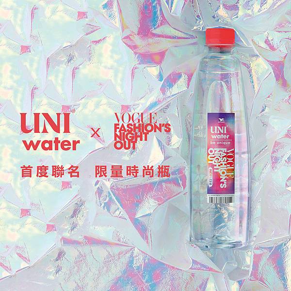 在台北時裝週期間,更於市售通路推出「七彩霓虹」限量瓶身,運用2018最流行的霓虹光芒,演繹出七彩幻化的聯名設計,即使是一張小小的標籤,也將包裝水的設計帶入了嶄新的領域,讓每一位消費者都可以在全省便利商店選購,感受共同參與時尚盛會的臨場感。兩大時尚龍頭品牌的跨界合作,一方面代表頂尖時尚雜誌與時尚包裝水的完美搭配,另一方面也象徵時尚的事,由VOGUE與UNI water說的算!