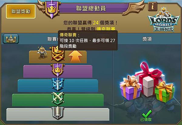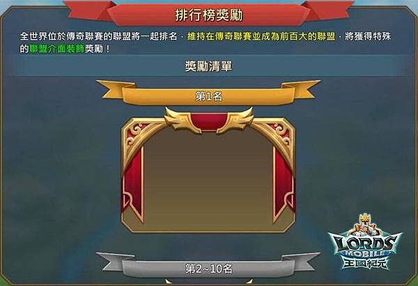 王國紀元的玩家們都知道,每到聯盟總動員期間,只要全盟成員上下一心解任務提升實力,就有機會在活動期間衝高任務分數,讓自己和盟友們開心贏得豐富獎勵!現在,更艱鉅、更高規,同時也有著更豐厚的挑戰獎勵即將在「傳奇聯賽」展開!唯有能完整凝聚盟內成員向心力的超強聯盟,才有機會挑戰成功!在聯盟總動員中搶進史詩階級前三名的聯盟,方能在下次活動開始的時候進階「傳奇聯賽」,加入角逐聯盟榮耀的行列。