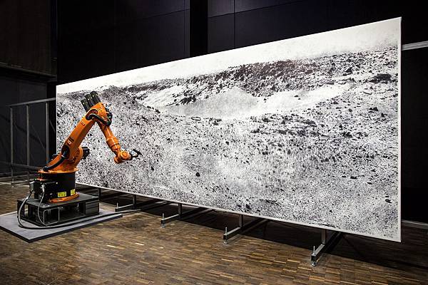 以機器來作畫,也早在1959年,由著名的瑞士雕塑家及畫家尚•唐格理Jean Tinguely以 Méta-matics 一作實現。這次的展出邀請到德國媒體科技藝術中心(ZKM)機器人實驗室(robotlab)利用庫卡機器人研發的巨型繪畫創作。這件作品源自美國航太中心(NASA)在火星以自動偵察機器拍攝及傳回的影像,robotlab的庫卡機器人以此為本繪製一件巨型的超寫實火星風景。此作品的特點是只以一個連續不斷, 長達數百公里的單一線條來完成此一鉅作,因此它背後所含帶的運算需求及執行精密度可說是超越了人類的能力極限,機器人在長達數個月、不間斷地情況下,用一條連續的線,繪製出火星景觀。通過這獨特的技術,創造了一種細緻度和精準度兼具,且獨一無二的藝術作品。