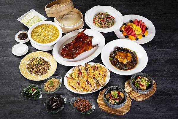 - 豪華雙人套餐包含:香宮明火例湯/翡翠金湯焗大明蝦/香檳汁焗子排/金銀蒜蒸原只鮮鮑魚/ X.O 醬蜜豆火鴨粒炒絲苗/芋頭西米露拚蛋塔/水果拼盤。