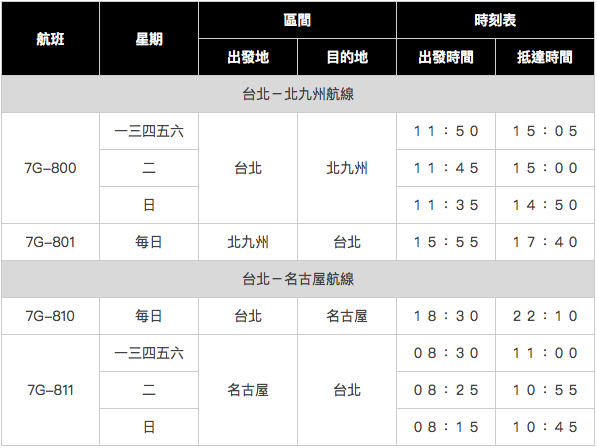 ◆北九州、名古屋開航紀念價 單程最低2,800臺幣