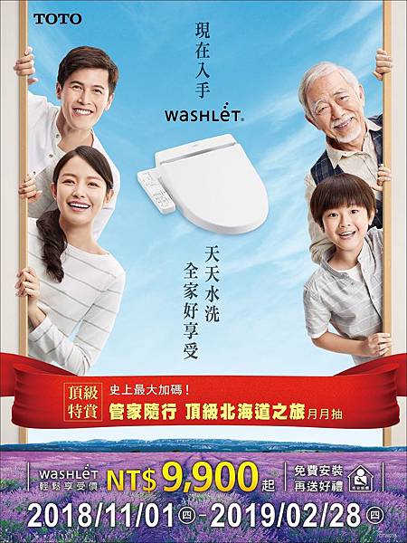 TOTO史上最大年終優惠活動期間從2018年11月1日至2019年2月28日,提升家中如廁品質就趁現在。