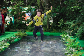 潮濕的雨林沼澤中佈滿各種動植物,其中雙冠蜥能用輕功般的水上步伐橫越水面,快來試試靠自身平衡感與快速的腳步橫越水面的快感吧!