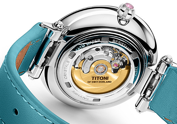 本款腕錶的另一大亮點則是透明的錶殼底蓋,讓配戴者能一窺自動機芯以及18K鍍金的華美自動擺陀。透過這個底蓋上的魔術窗,盡顯腕錶內部精緻的工藝結構,除清楚欣賞機芯的時刻律動之美外,日常持續佩戴,隨著手腕輕柔搖曳,也讓雙向上鍊的機芯帶來長達40小時動力儲存的滿滿動力。這個新改款在優美弧形而帶有女人味的錶殼裡配置了更輕盈小巧的ETA 2671機芯,提供您在佩戴上更為舒適。