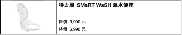 適逢冬季保暖與孝親需求大增,為免治馬桶熱銷旺季,特力屋SMaRT WaSH再推6,990元(原價9,990元)超殺入手價,更可享免費標準安裝,小資族也能輕鬆入手,自用孝親兩相宜,在冷冷的冬天溫暖「入座」,放鬆享受健康潔淨體驗。