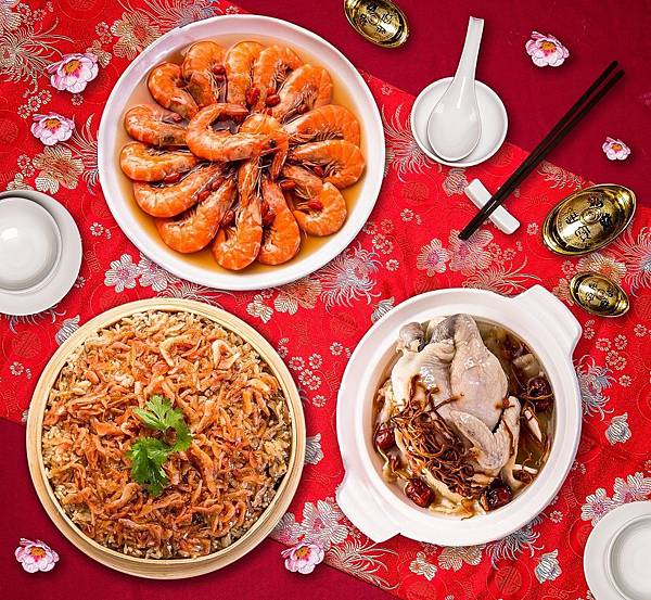 蝦皮獨賣朱記年菜系列-三旺福,含鴻運櫻花蝦油飯、冰鎮紹興醉鮮蝦、黃金蟲草燉雞湯,原價1,944元,1月4日前限量下殺1,435元