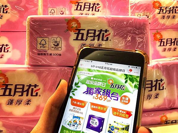「五月花超級品牌日」(1/10)年度熱銷王「五月花新柔韌衛生紙」激殺送蝦幣、折價券整點開搶