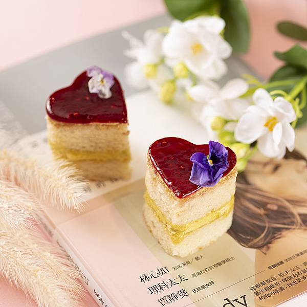 讓人第一眼看到就想談戀愛的慾望,猶如走在法國街道上浪漫邂逅金髮帥哥。主廚巧手將法式達克瓦茲蛋糕作成愛心形狀,還妝點了小花在上頭,展現女人對愛情的浪漫想像,期待每個在愛裡的女人就像第一章裡「勇氣,是女人的隱形行李箱」能夠擁抱適合自己的幸福!