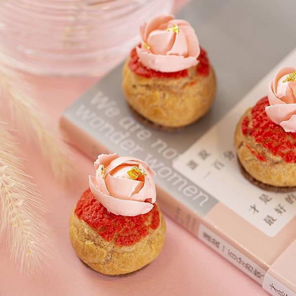 說到愛,總讓人立刻聯想到玫瑰花與巧克力,因為玫瑰與巧克力常被人們用來表達愛意,在第三章「放輕鬆,我們不一定要當Wonder Woman」裡,Melody提到女人的公主夢,於是主廚將這兩個代表愛情的元素加在一起,托著嬌豔粉嫩花瓣的是有著濃郁巧克力內餡的手工泡芙,就像每個女孩心裡總希望能像公主一樣被王子捧在手心裡。