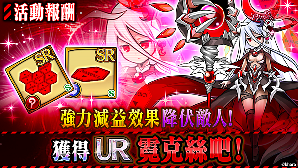 在活動期間中登入遊戲即可獲得UR召喚角色「[賽車皇后]明日香×真理」。另外,在遊戲中的活動限定關卡中,可藉由累積積分來獲得同樣的召喚角色,解放她們的潛在能力讓她們的戰鬥力大大增強吧。