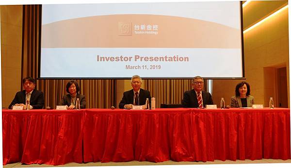 今日法說會由該公司總經理林維俊、財務長賴昭吟、投資長簡展穎,以及子公司台新銀行總經理尚瑞強、法人金融事業總處執行長林淑真五人共同主持;林維俊表示,台新金控去(2018)年在淨利息收入、淨手續費收入及投資收益等主要收入均較前年成長,營業收入年增5.1%;惟基於穩健原則,對普天集團應收帳款承購業務可能損失也在去年全數提列備抵,因而全年稅後淨利較前期減降1%,林維俊也指出,台新金控今(2019)年前二月稅後淨利年成長達27%,全年將持續穩健積極的推動各項業務。