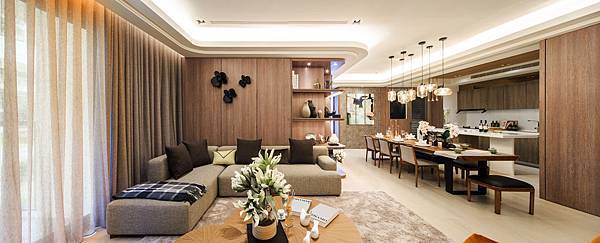 在鄉林最擅長的公設部分,「鄉林淳真」以擘造涵碧飯店累積的豐富經驗,以大批天然質地建材,打造一個結合美感、美景體驗的世界級的渡假飯店宅,深色系的挑高大廳、搭配格柵,讓光影自然走入室內,創造獨樹一格的優質居住體驗。不僅如此,包括鏡面水池、渡假泳池、閱覽室、露天茶亭、輕食吧的設置,在在彰顯入住者獨到的品味,與極具東方禪味的休閒氛圍,讓住戶回家就能享有國際飯店級的渡假生活。