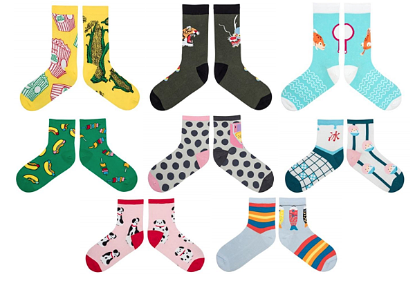 當美式爆米花遇上夜市烤玉米、當熱狗堡遇上串燒,TwinSocks創造差異又保持和諧的功力正常發揮。穿上撈金魚、彈珠台、剉冰、廟宇等充滿夜市元素的襪子除了是今夏最狂的打扮,當作禮物送給外國朋友也絕對是最有在地風情的文化交流小物